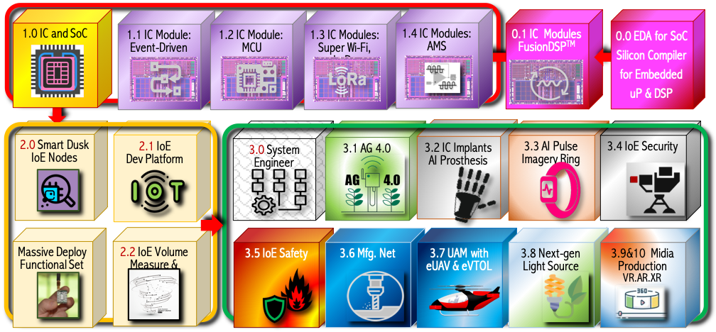 Component, miniatureEvent-driven Logic Design, SoC (system on chip) design, fablessSmartDust IoE Network Nodes for instant massive deploymentInnovative concept get miniaturizedProvide off-shelf components w/ solutions, high-volume for wide apps