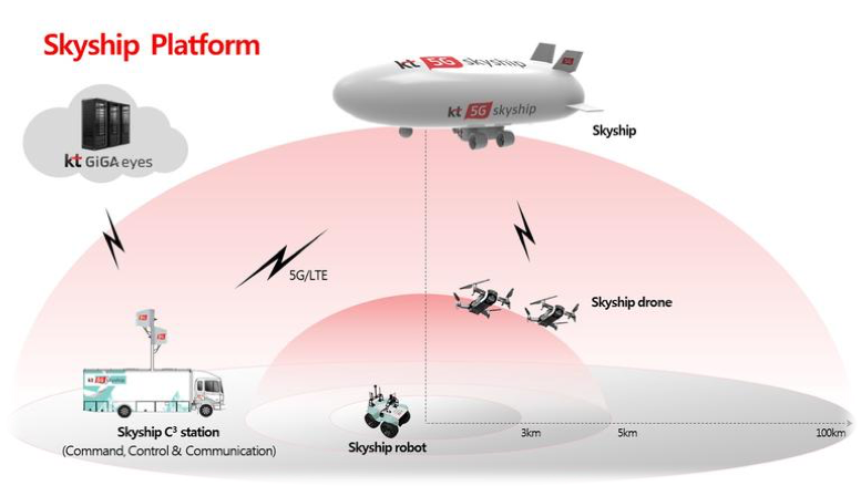 1. Base Station: SuperWi-Fi air-to-surface, installed on existing communication towers, top of buildings, hills, water banks and can be mobile in air (airships) or on ground (rugged vehicles);